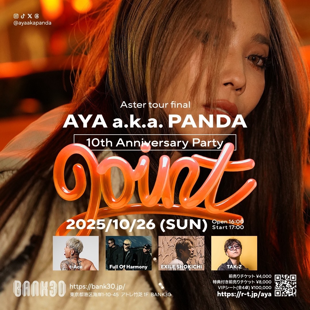 10/26(日)「AYA a.k.a. PANDA 10th Anniversary Party – Joint」出演決定!